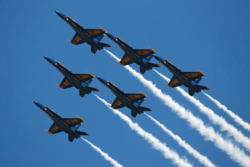 The 100-400 L is, for many photographers, the lens of choice for air shows. I certainly find that it is the lens I reach for when I want to shoot planes and helicopters. At the 2007 Hillsboro Air show, I counted no less than 6 other photographers using this lens to shoot the air exhibitions.This lens used with the the 45 point AF in AI Servo mode on the 1D Mark IIN camera let me capture shots that would have been much more difficult to achieve with a lesser lens and camera combination. Even when mounted on my Canon 20D, the lens helped me to get excellent results. I shot for nearly 4 hours with this lens, and although its heavy, the balance and ease of use did not result in any significant fatigue. The push-pull zoom mechanism was great for keeping fast-moving planes within the image frame and using it was 2nd nature after only a few minutes of shooting. The white color did keep the lens considerably color than the black 24-105 f/4 L IS I had mounted on my other camera. This lens contains both fluorite and Ultra Low Dispersion (UD) lens elements which provide the excellent color and contrast. It's said that the "Canon White" color of the lens is to help protect the fluorite elements in the lens from heat build up. If so, the color seems quite effective to me.