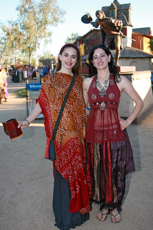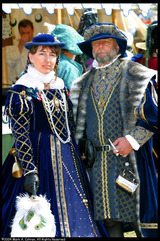 Renaissence Fairs provide great photographic opportunities, as well as an opportunity to dress up and have some fun pretending to visit Olde England. The Fairs that I routinely visit and photograph are the Washington Renaissance and Fantasy Faire, the Shrewsbury Renaissance Faire, the Portland Pirate Festival and lately the Arizona Renaissance Festival which I attended and photographed for the first time this year (2007). It's a good thing I went to that fair because my mother's illness and subsequent death and funeral kept me from attending the Washington Ren Faire, and a wedding prevented attendance at the Shrewsbury Event. If you've never been to a Renaissance Faire or Festival, you really owe it to yourself to visit one, especially if you're a photographer or just enjoy watching people. You don't have to dress up to go, although that's a huge part of the fun. The costumes vary from the very simple, hand-made peasant outfits to very elaborate (and expensive) Court costums (gowns, tunics, etc.). Many faires have booths where ou can rent costumes for the day, and lots of places willing to sell you various costumes and accoutrements such as jewelry, bags, belts, buttons and pins, daggers, shoes and boots, and even swords and other blades. While wandering the faire grounds you'll run into bards, jugglers, magicians and other entertainers who often put on scheduled and even impromptu shows throughout the day. You'll also likely encounter peasants and beggers, lords and ladies, foreign fighters and monks, as well as wenches with scandlously cut bodices. And without a doubt, there will be a few fairies wandering through the crowds stirring up some mischief. When the King and Queen's Court is on the move, all bow and give way as the nobles make their way from field to court and back.